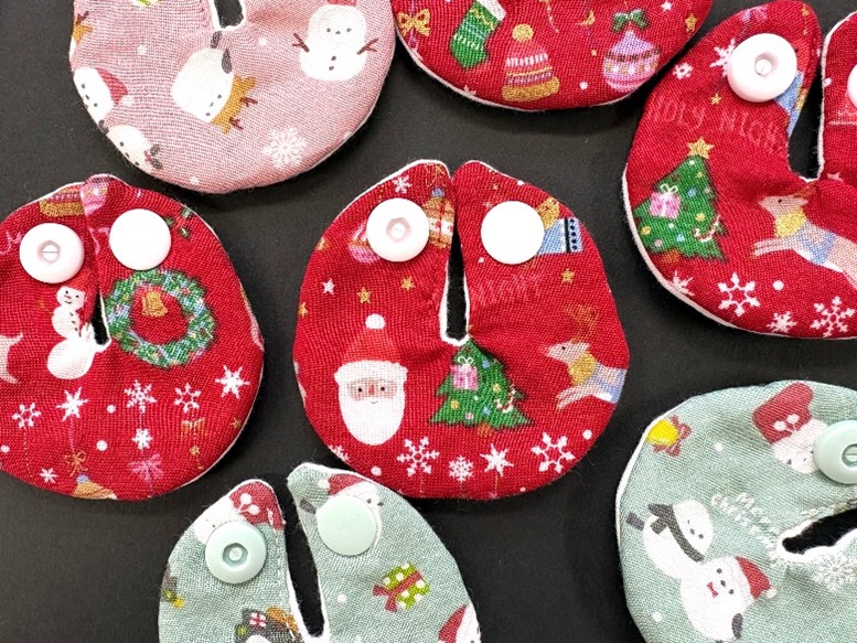 利用者さまのお母さんからクリスマスバージョンを作ったのでぜひ皆さんに♪と胃ろうカバーをいただきました。
